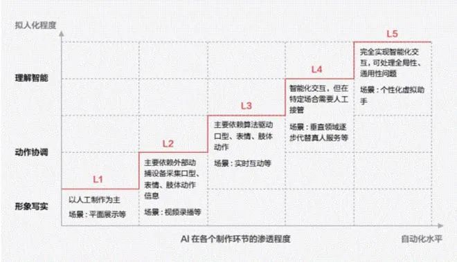 图:数字人L1-L5等级(商汤智能产业研究院)